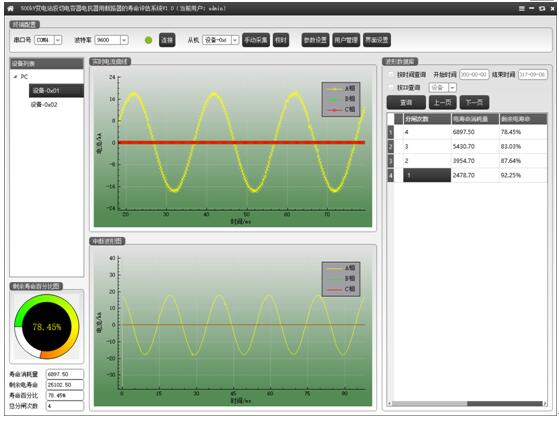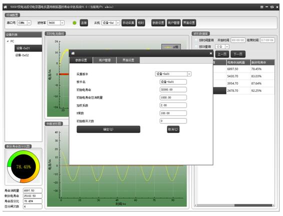 系統(tǒng)所監(jiān)測(cè)斷路器可根據(jù)實(shí)際情況進(jìn)行增減,可人工設(shè)定斷路器的型號(hào)、額定開(kāi)斷電流值、額定開(kāi)斷次數(shù)、初始?jí)勖然A(chǔ)數(shù)據(jù)。